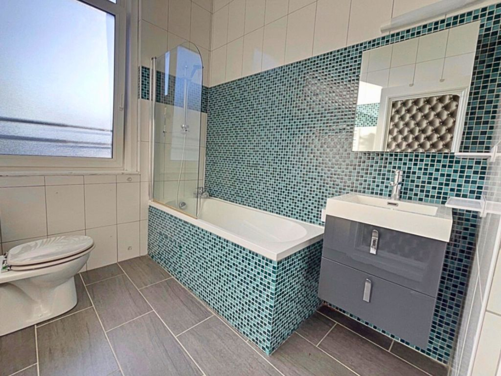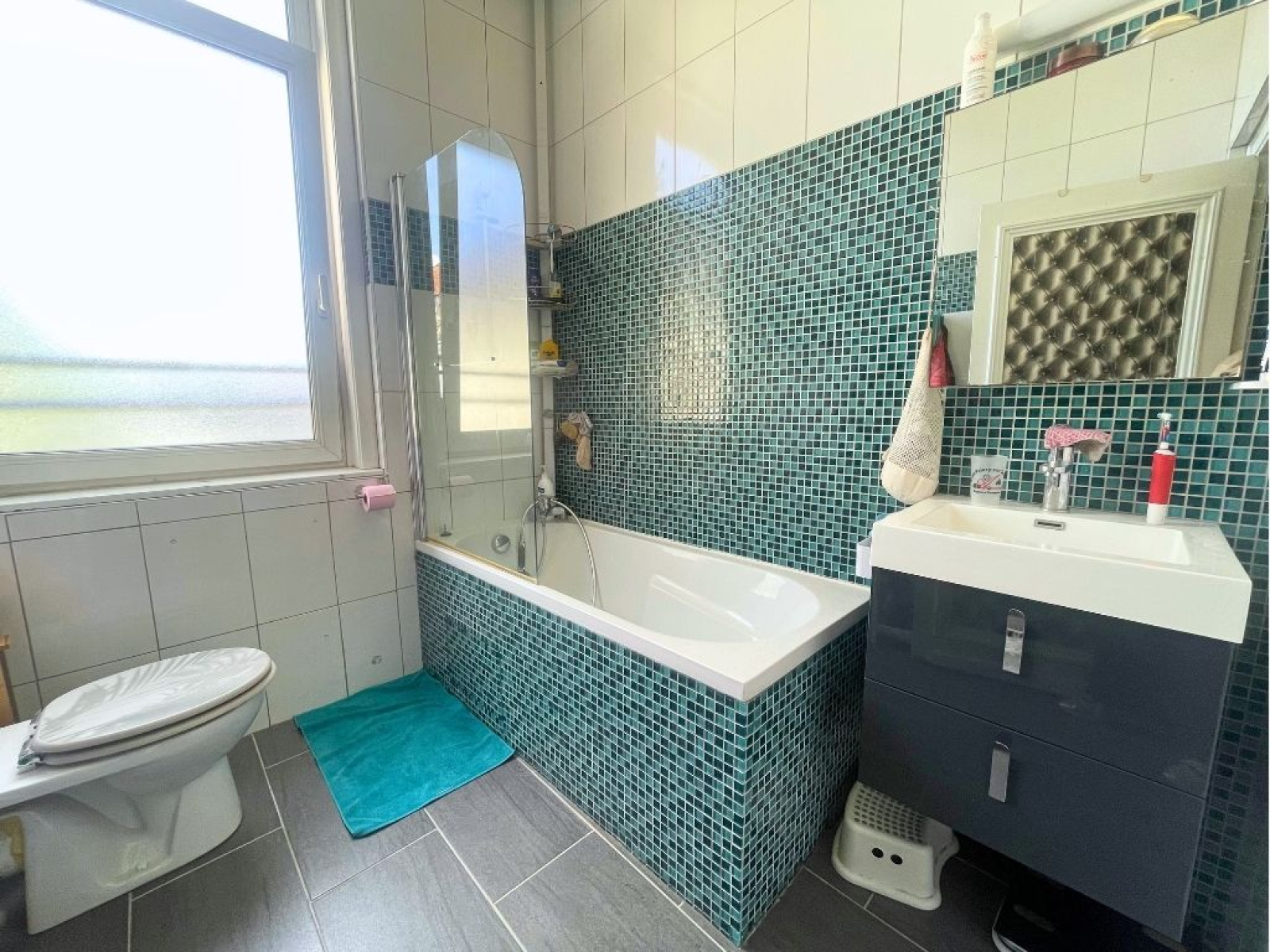 Trois chambres spacieuses, une salle de bains avec WC et des rangements.